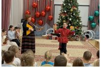 В преддверии новогодних праздников к воспитанникам дошкольных отделений с традиционным новогодним концертом приходили учащиеся и педагоги Детской школы искусств им. А.А. Алябьева.
