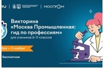 На Учи.ру 7 октября — 5 ноября для учеников 6–11 классов будет проводиться бесплатная всероссийская викторина «Москва промышленная: гид по профессиям», которая организована Департаментом инвестиционной и промышленной политики города Москвы и АНО «Моспром».